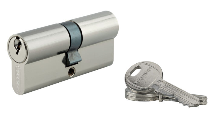 Pour être performant, le cylindre doit être compatible avec votre porte. Un cylindre trop court ou trop long risque de compromettre, non seulement l’esthétique, mais aussi la sécurité de votre foyer. La longueur d’un cylindre se mesure depuis son panneton (la pièce centrale qui entraîne la serrure) jusqu’aux deux extrémités. Attention à bien prendre les bonnes cotes (intérieure et extérieure). En définissant la bonne dimension, vous limitez toute exposition et point de faiblesse.