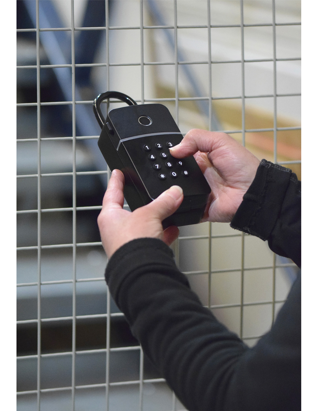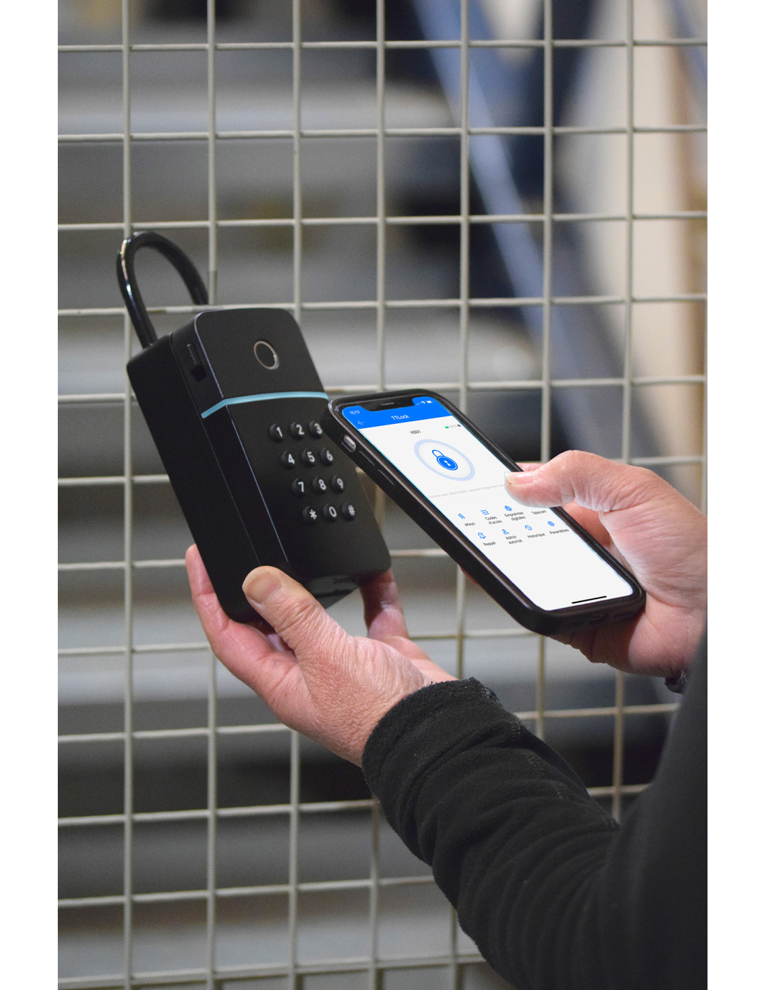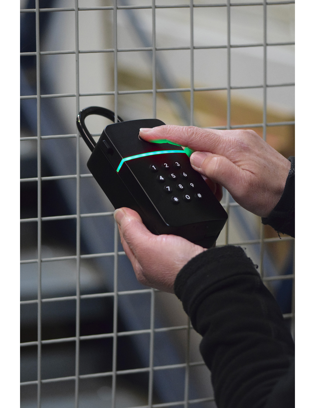 Boîte à clé connectée. Permet de piloter les ouvertures à distance, attribuer des codes d'accès permanents, temporaires ou cycliques et consulter l'historique des utilisations.