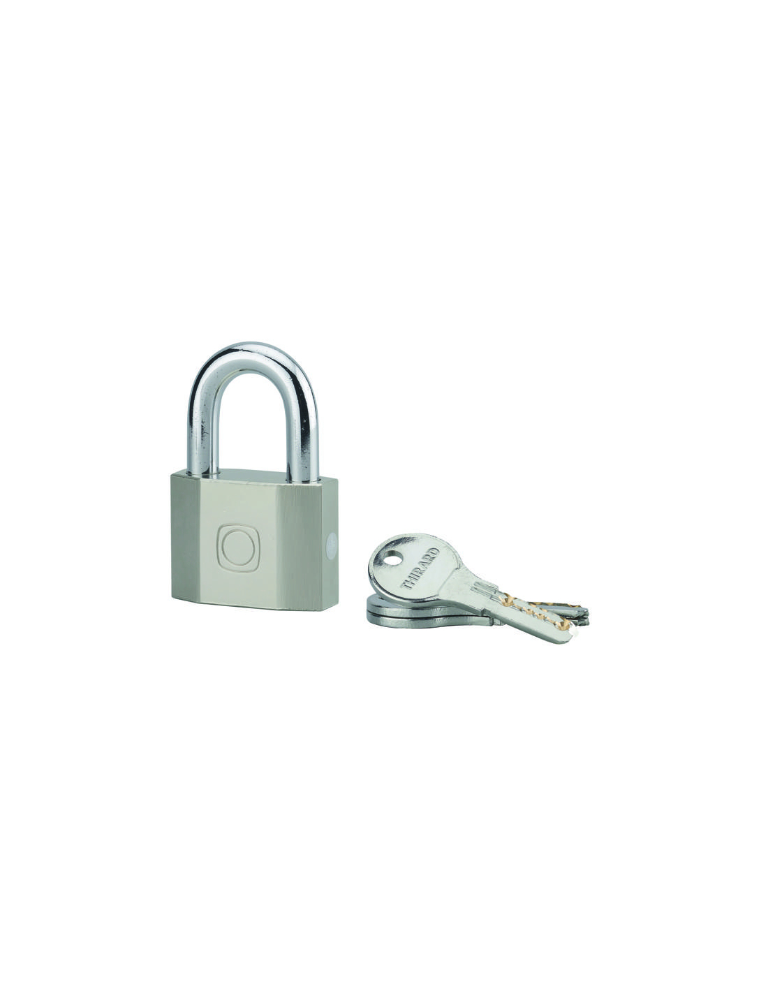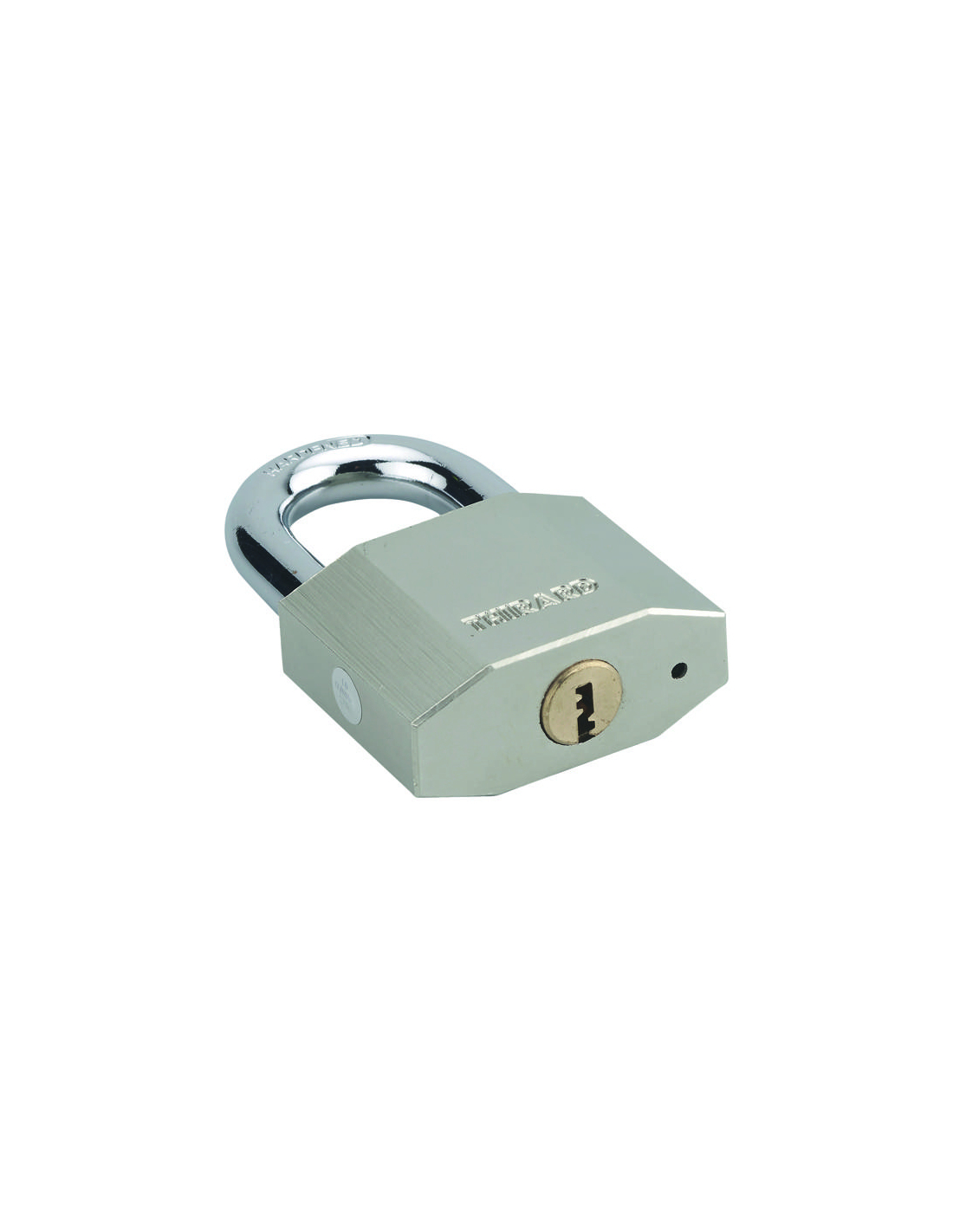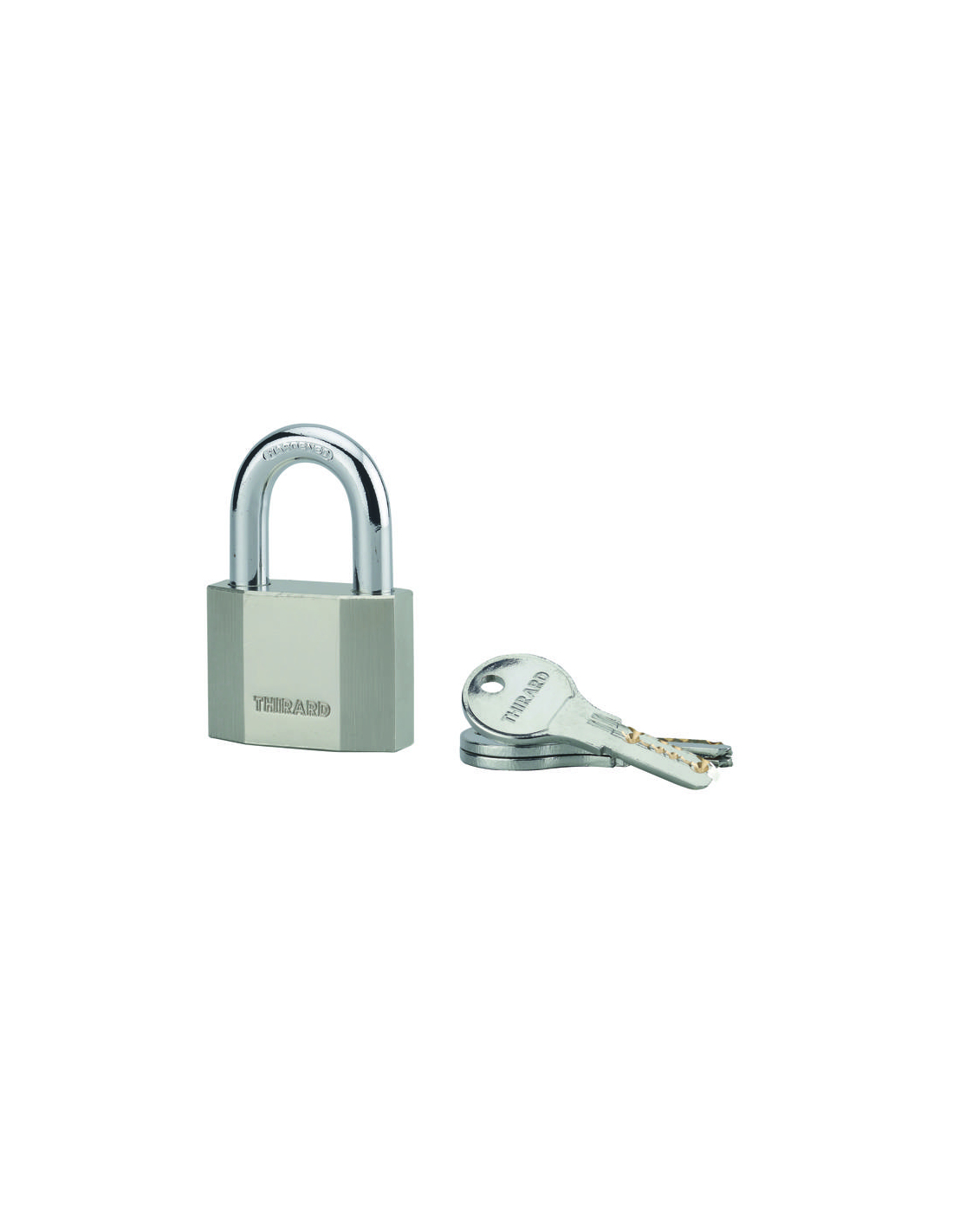 DescriptionCorps acier. Anse acier cémenté nickelé. Mécanisme à goupilles. Double verrouillage par billes. Trou découlement deau. 3 clés réversibles. FinitionChromé satiné. UtilisationChantier