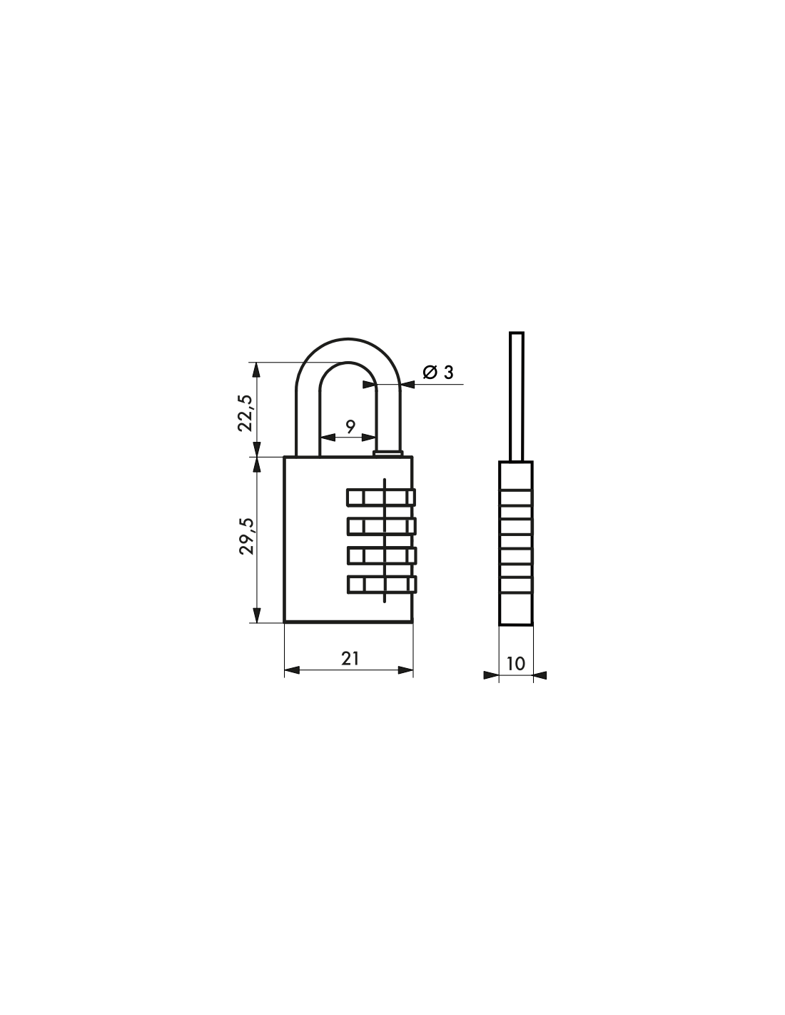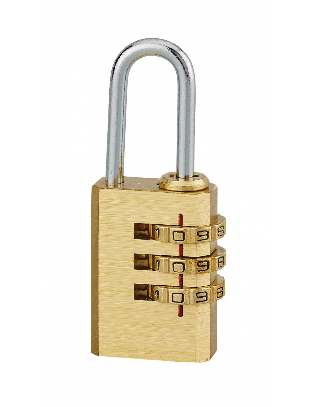 DescriptionCorps laiton monobloc. Anse acier nickelé. Mécanisme à 3 viroles. Cadenas à code avec combinaison modifiable