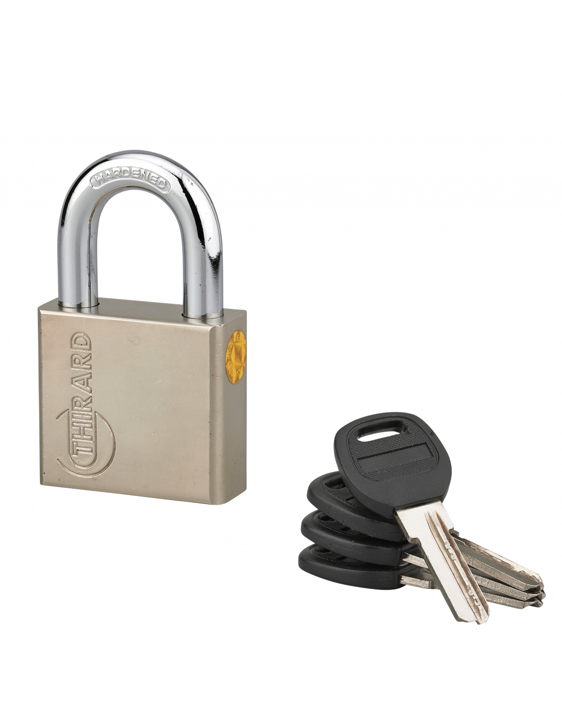 Cadenas Type 1 (30 mm à 70 mm) - Anse classique, Haute ou 1/2 haute. Cadenas 00180030 DescriptionCorps laiton monobloc. Anse acier cémenté nickelé. Mécanisme à goupilles. Double ancrage. 2 clés acier nickelé.FinitionLaiton poli VersionSimple ancrage pour taille 30 - 35 mm. Anse demi haute pour taille 30-40-50 mm. Anse haute pour taille 40-45 mm. Clés supplémentaires sur modèle. Sans fabrication sur numéro imposé. Cadenas sur même... En savoir plus