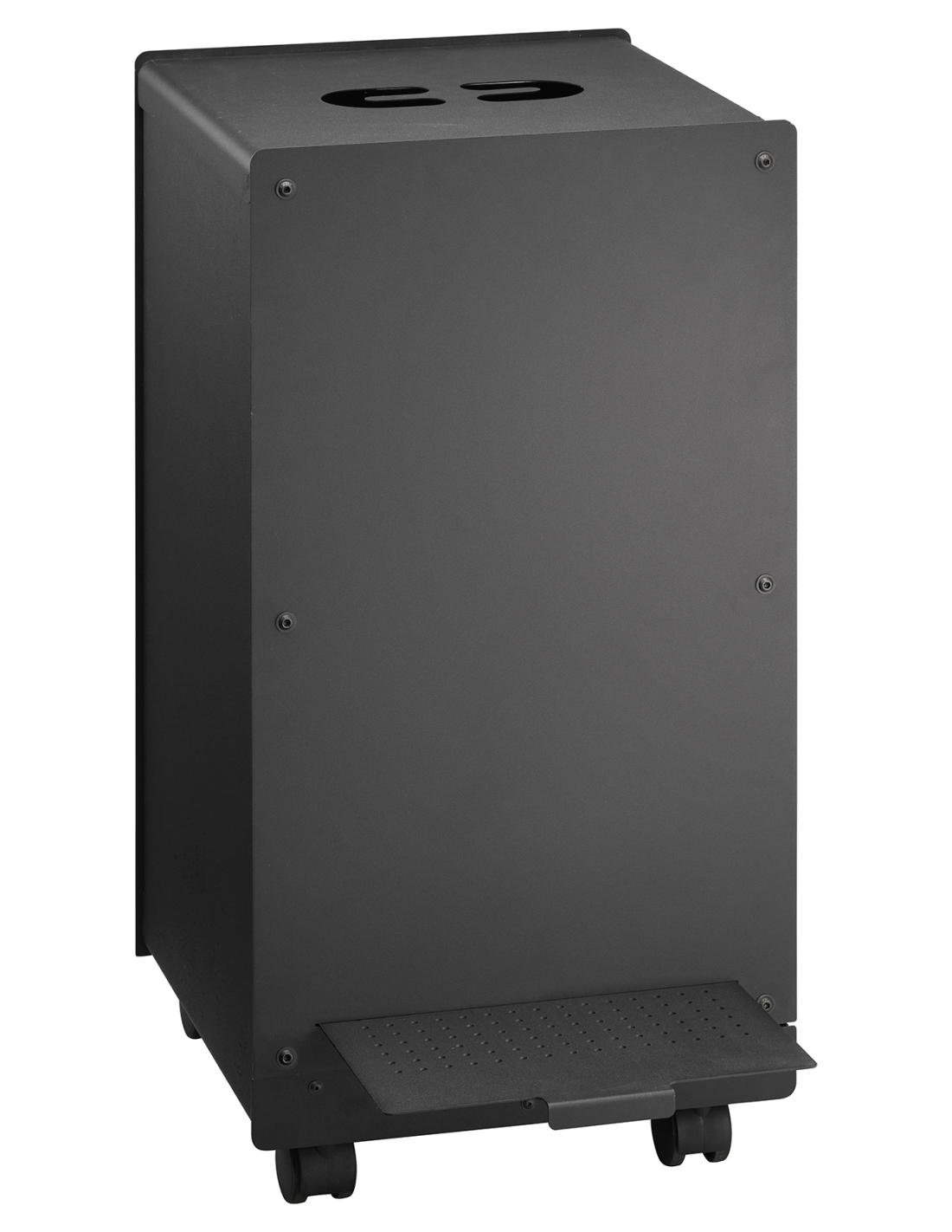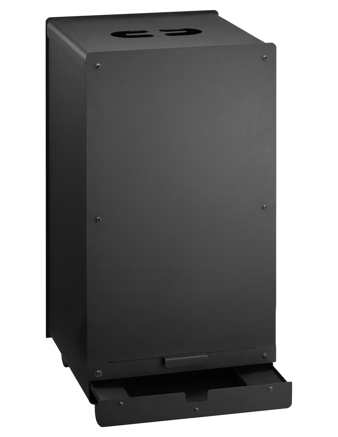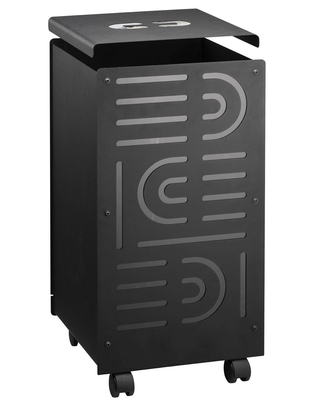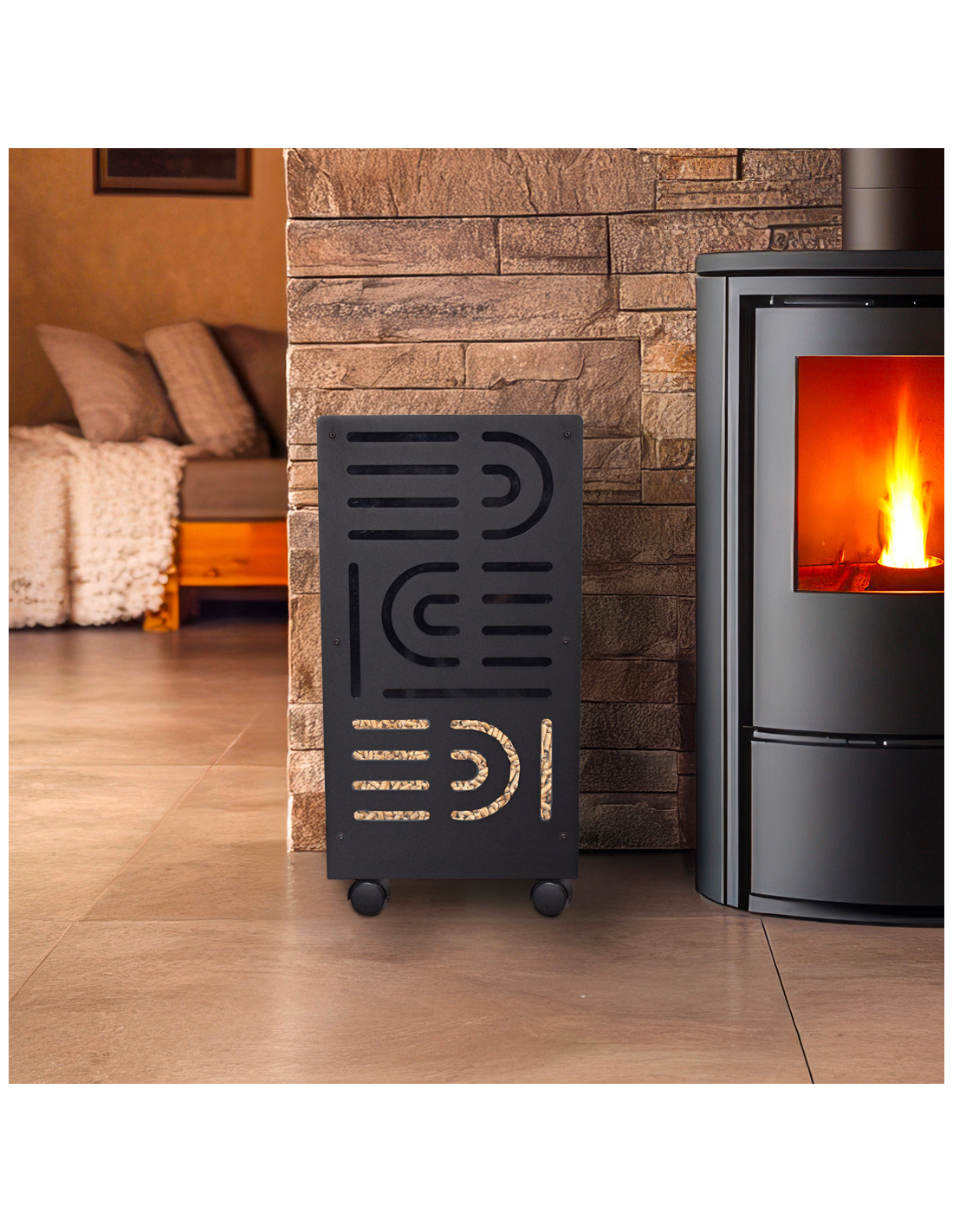 Description :Stockeur pellet. Capacité de stockage 45 kg. Plexiglass 2 mm. Tiroir à poussière. Fourni avec couvercle de fermeture et 4 roulettes. A assembler.Finition :Epoxy Noir Utilisation :Solution de rangement Extérieur / Intérieur