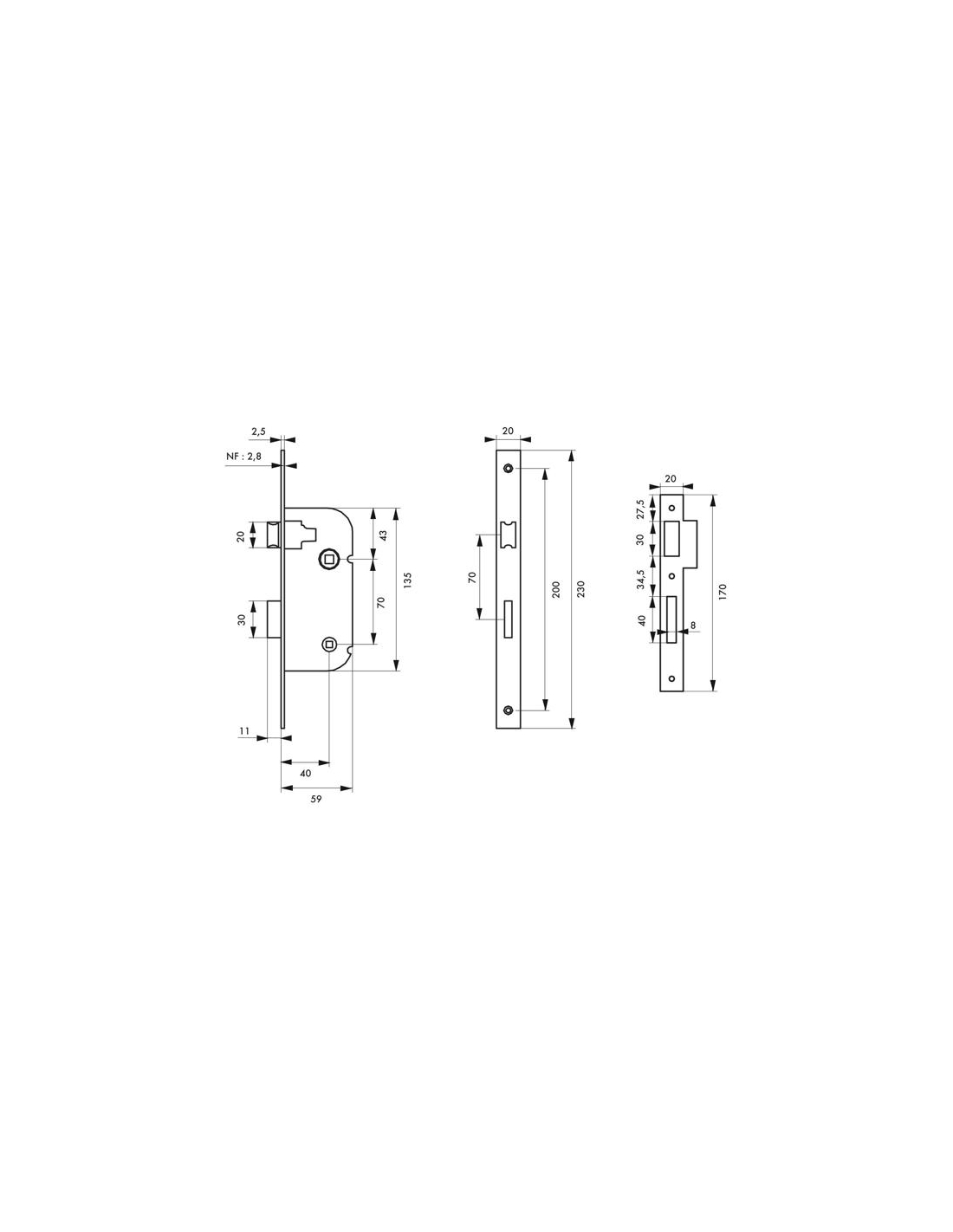 SERRURE axe 40 mm à condamnation tétière inox BR avec gâche