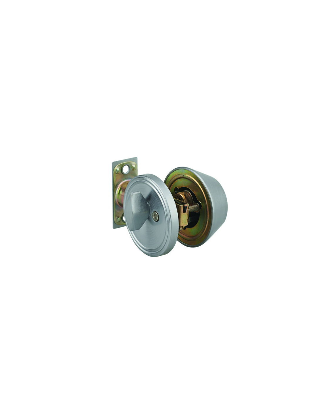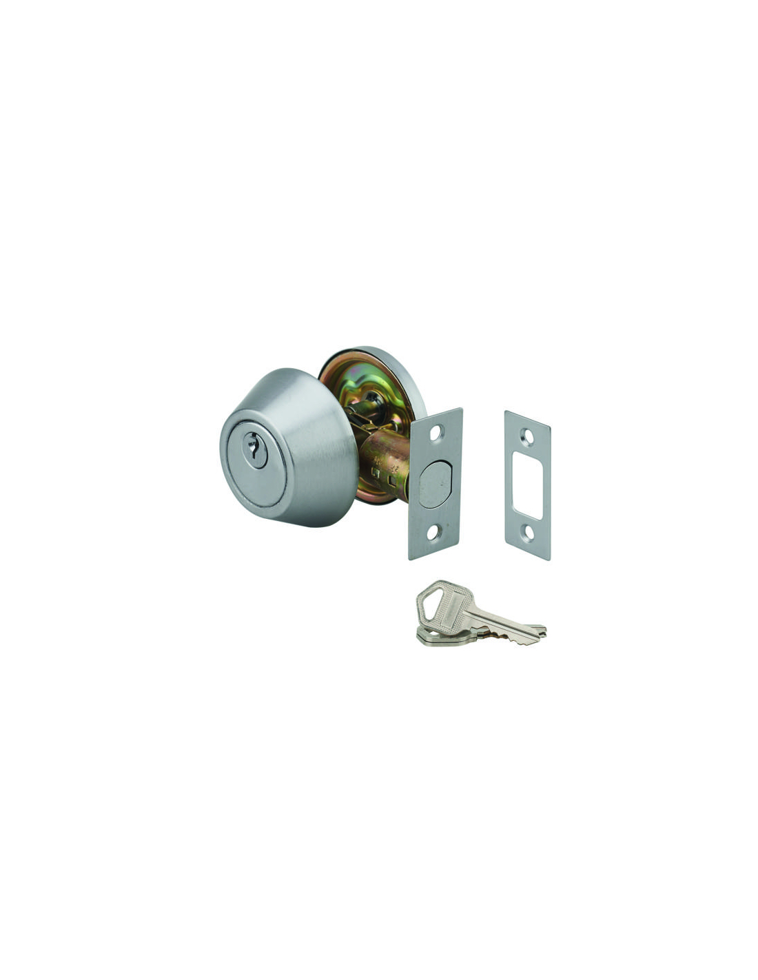 Description :Boîtier extérieur avec cylindre de sûreté à goupilles. Boîtier intérieur avec bouton de condamnation. Pêne avec dispositif antisciage et têtière rectangulaire. Gâche plate. Axe réglable 60/70mm. 3 clés en acier nickelé.