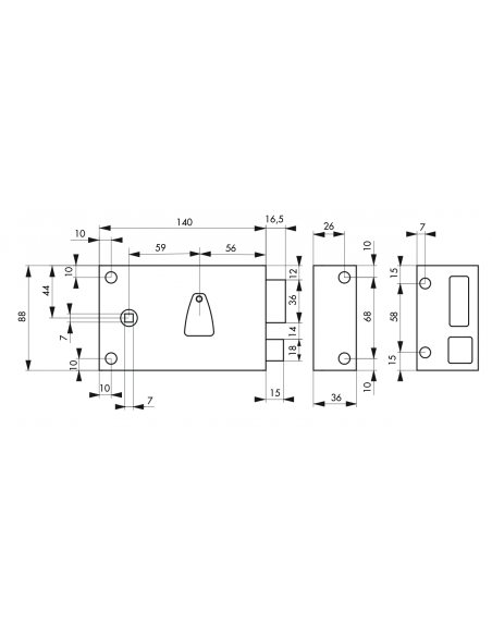 Serrure en applique 4 gorges - 140x82 mm - droite OU gauche / Tirage ou Fouillot (selon modèle) Serrures en applique 00500113 En savoir plus