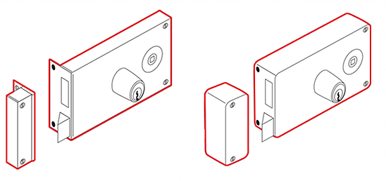 Les serrures à appliquer verticales sont conçues pour des portes avec un montant étroit, alors que les serrures horizontales sont utilisées pour les portes à montant large.